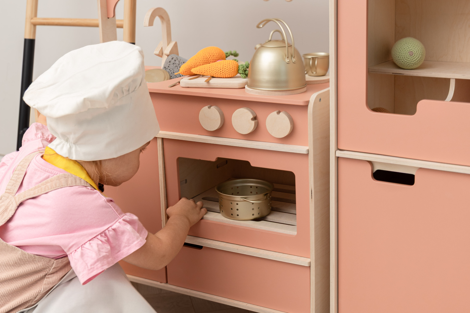 With their own wooden play kitchen, cooking turns into connection - every knob, shelf, and spoon becomes part of a shared story. Safe, sturdy, and full of love - designed for little hands to learn big things.
