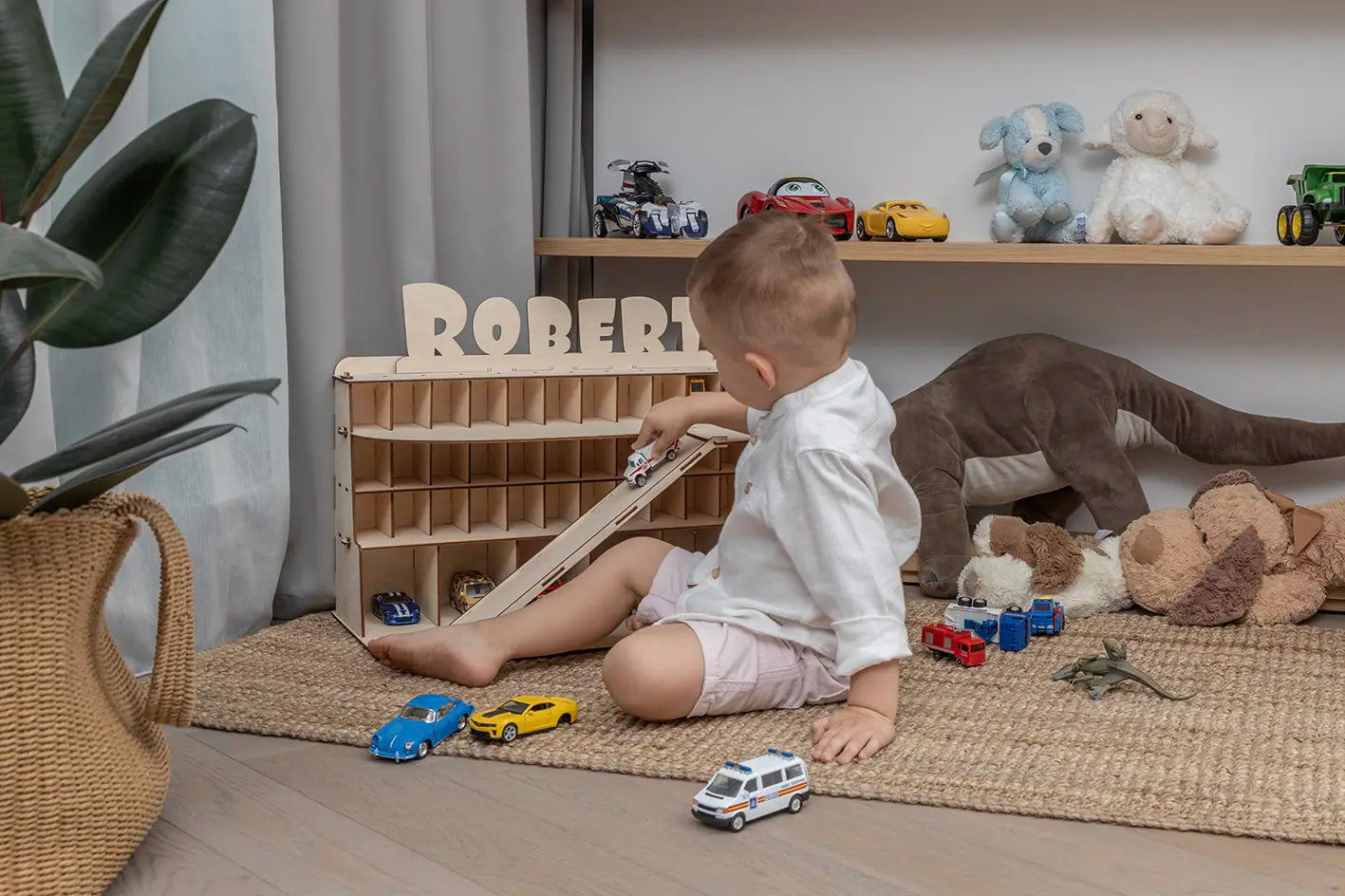 El garaje de madera no es solo una estantería. Puede enseñar a los niños a ser creativos, a tomar la iniciativa, a desarrollar la imaginación y la motricidad fina y, por supuesto, ayudará a enseñarles a ordenar una habitación con gusto. Lo mejor es que es personalizable.